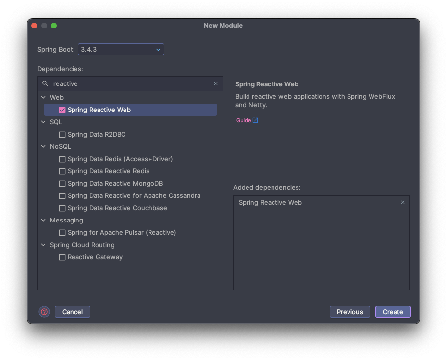 3. Spring Reactive Web 의존성을 추가해준다.